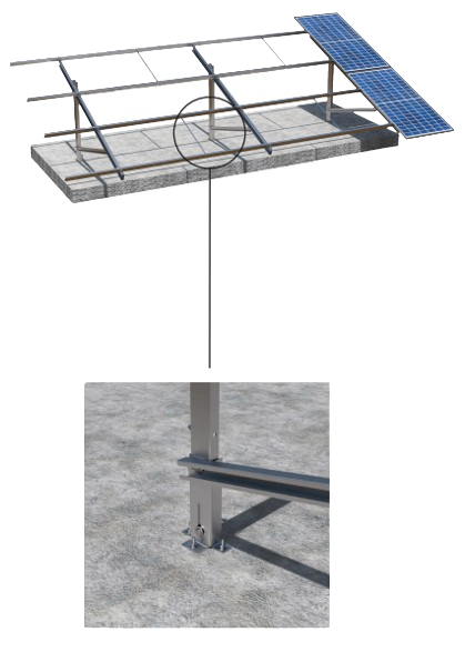El diseño de nuestra estructura Biposte cuenta con dos postes de soporte, distribuyendo de manera uniforme las cargas de los módulos fotovoltaicos.